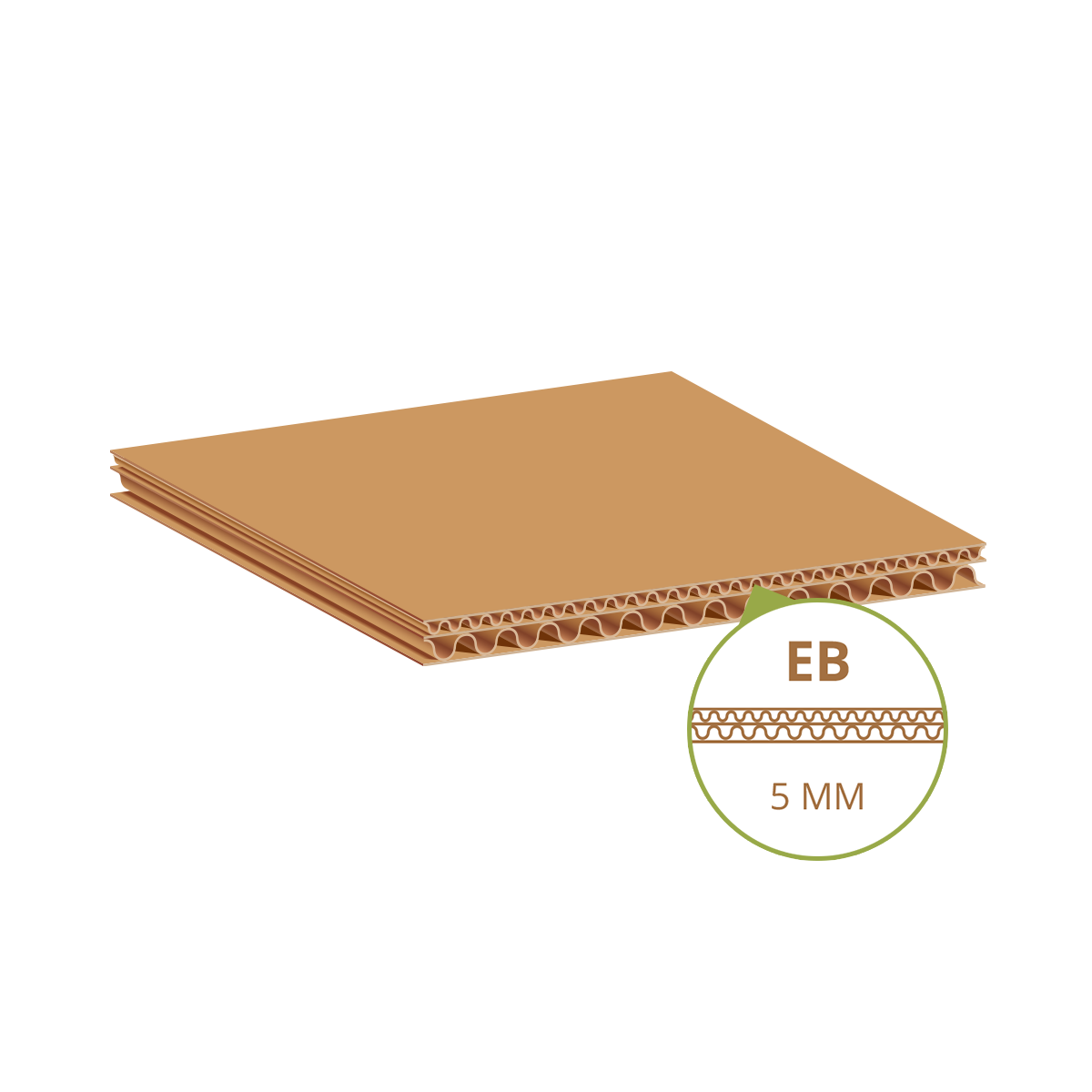 Eine der beliebtesten und meist nachgefragtesten Wellenkombinationen ist die der E-Welle mit der B-Welle. Das fertige Produkt trägt den Namen EB-Welle.