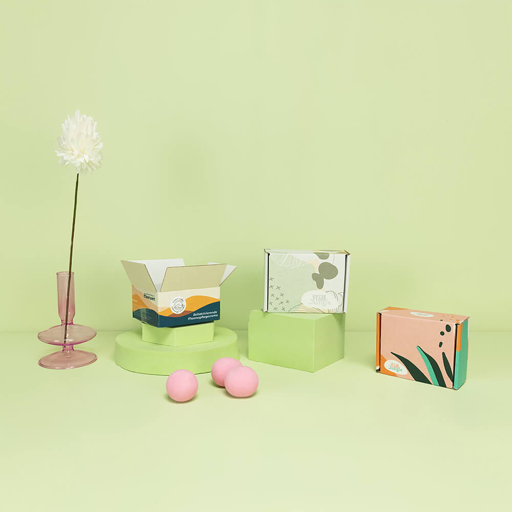 Ob Material, das Format, eine vollflächige Bedruckung oder beispielsweise auch Beschichtungen – unsere Faltschachteln aus Wellpappe lassen sich komplett individualisieren.