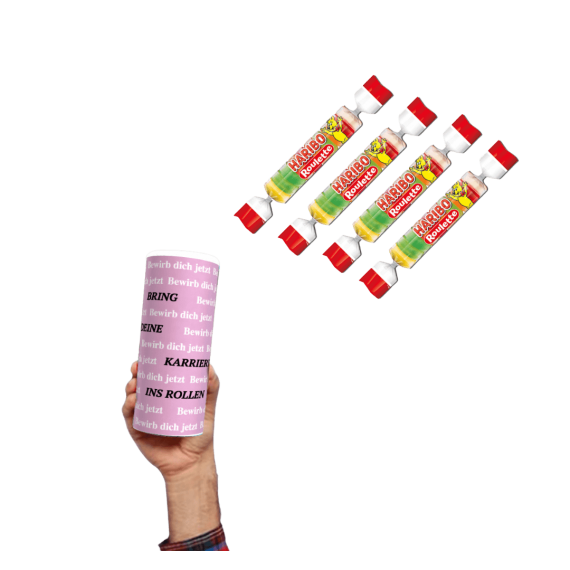 Geschenkdose "Bring deine Karriere ins Rollen" – Süßer Schwung mit Haribo Roulette