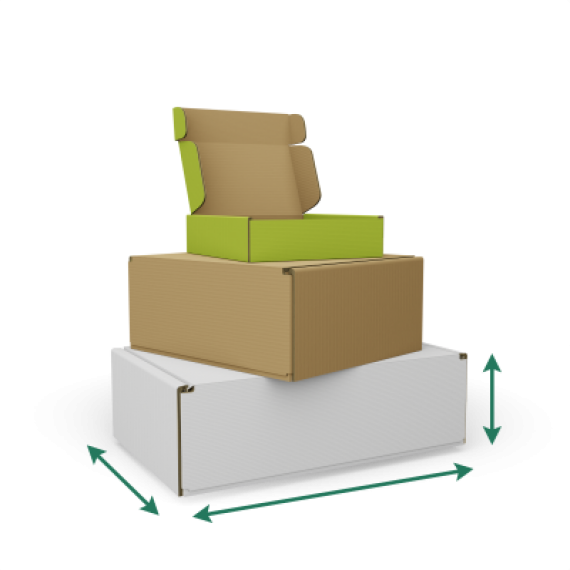 Klappdeckelkartons sind in verschiedenen Größen verfügbar. Durch die rechteckige Form können sie Lieferdienstleister in ihrem Fahrzeug optimal stapeln. Durch die individuell auswählbaren Maße kannst du die kleinstmögliche Größe wählen und dadurch Versandkosten sparen.