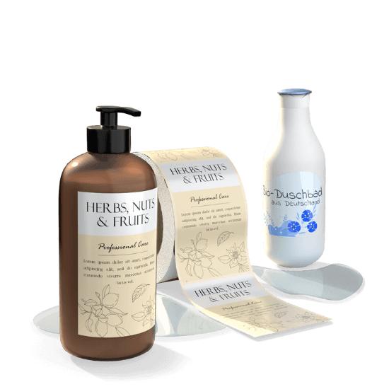 PP-Haftfolie zeichnet sich durch ihre außergewöhnliche Widerstandsfähigkeit gegen Wasser und die meisten Öle sowie Fette aus. Ihre Oberfläche ist hart und widersteht mechanischen Beanspruchungen, was sie ideal für Produkte macht, die rauen Umgebungen ausgesetzt sind, wie etwa Outdoor-Ausrüstung oder Getränkeflaschen. PP-Folien können dank ihrer Flexibilität auch bei niedrigen Temperaturen ohne Bruchrisiko verwendet werden. PE-Haftfolie bietet ähnliche Vorteile wie ihr Pendant aus Polypropylen, ist jedoch weicher und somit noch flexibler. Dies macht PE-Folien besonders geeignet für Produkte mit unebenen Formen, beispielsweise eine Shampooflasche. Ihre Dehnbarkeit sorgt dafür, dass die Etiketten auch bei Druck und Verformung während des Gebrauchs der Verpackung intakt bleiben. Diese Eigenschaften machen PP- und PE-Haftfolien zu den bevorzugten Materialien für wasserfeste Etiketten mit maximalem Schutz.