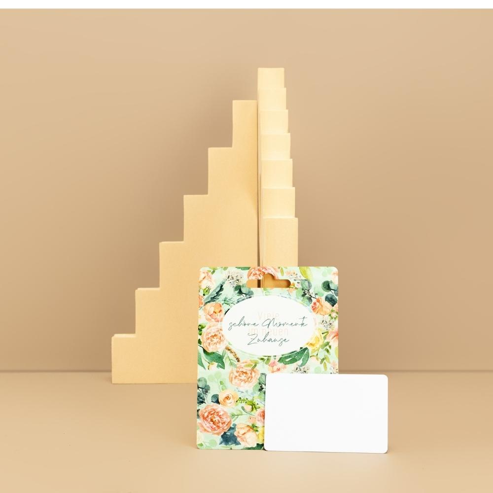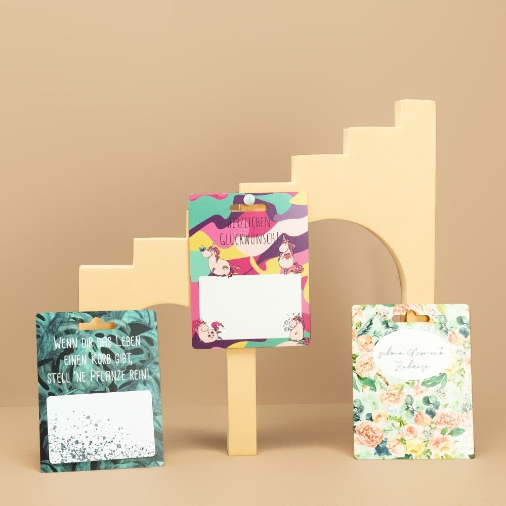 Not only do you decide on the individual size, but you also have many optional choices such as applying a protective varnish, using a protective laminate, or placing the Euro perforation (5 mm or 10 mm below the top edge).