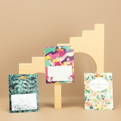 Euro slot hangers are cardboard hangers with standardized punched holes. The recess in the form of a slot is used to hang a carton, pouch or other packaging for product presentation. They fit exactly on the standardized Euro hooks, which are widely used in European retail. Uniform dimensions therefore ensure that goods are subject to the same conditions everywhere in Europe with regard to product presentation and that manufacturers can have the packaging for their products produced in a standardized manner and in large quantities. Euro slot hangers can be combined with many products, for example with folding boxes or display packaging.