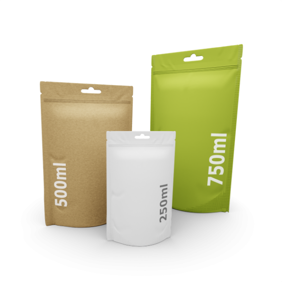 Questo formato di doypack è molto adatto a porzioni che vengono consumate per un periodo di tempo più lungo. Ad esempio, per cibo per cani di taglia più grande, leccornie, sali da bagno o tè.